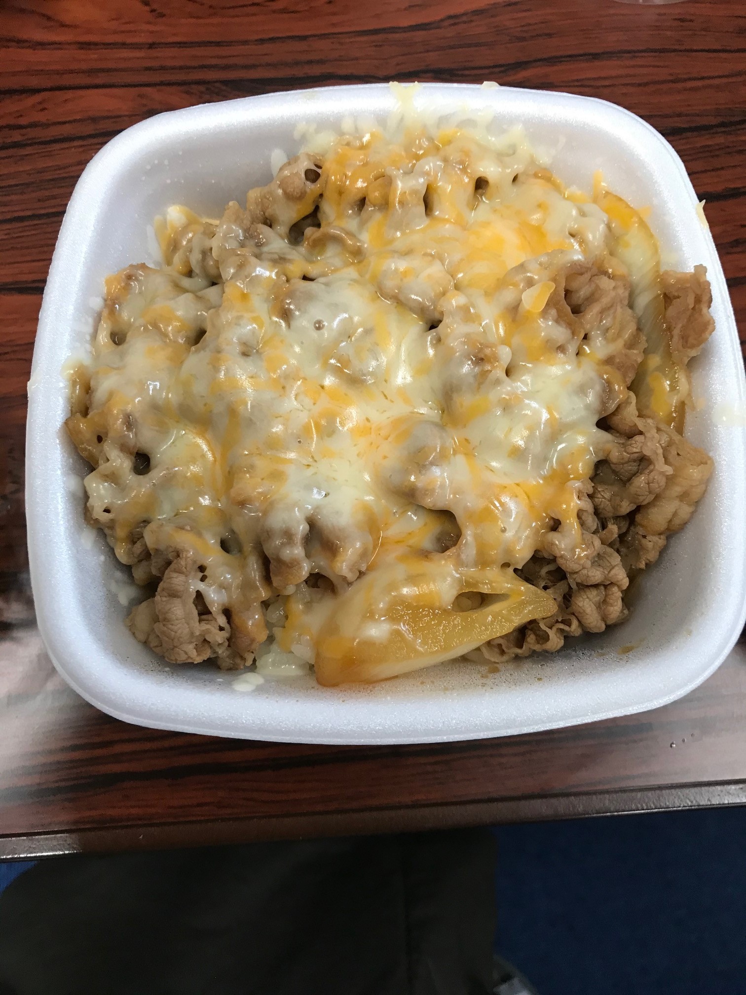 牛丼の上にチーズたっぷり✨