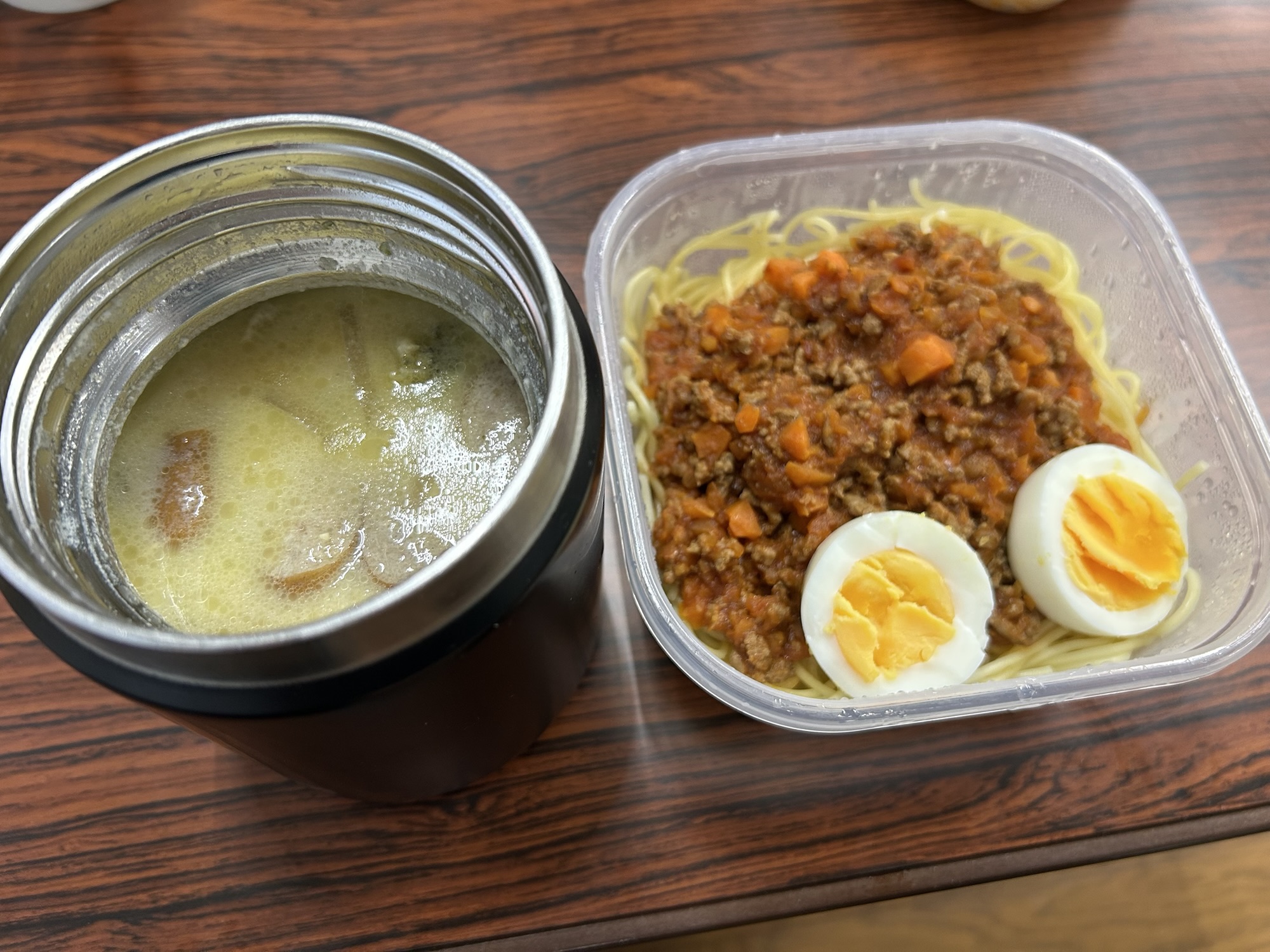豆乳スープとミートソースパスタ🍝